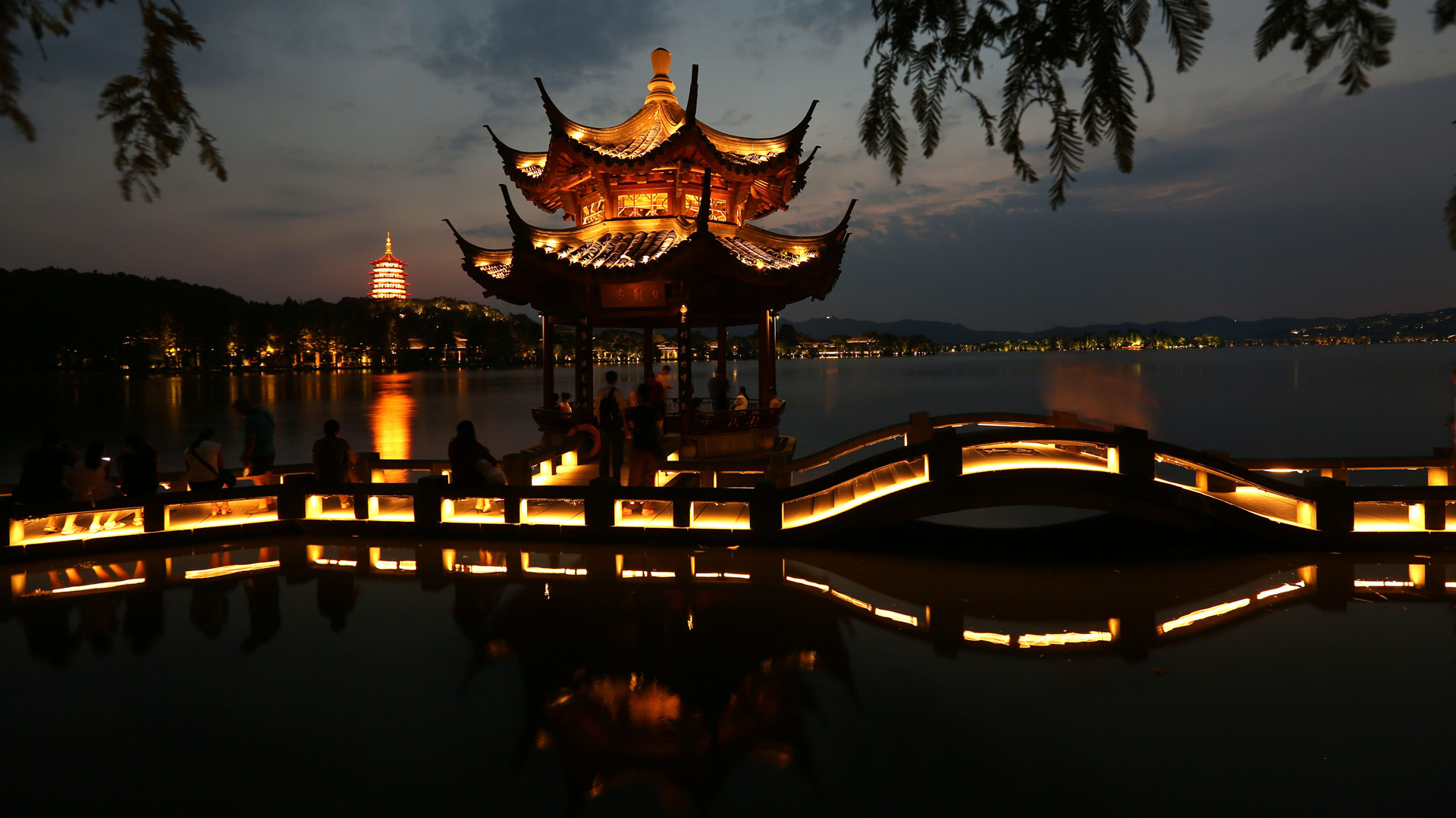 杭州西湖夜景(8月31日攝)。新華社記者殷剛攝