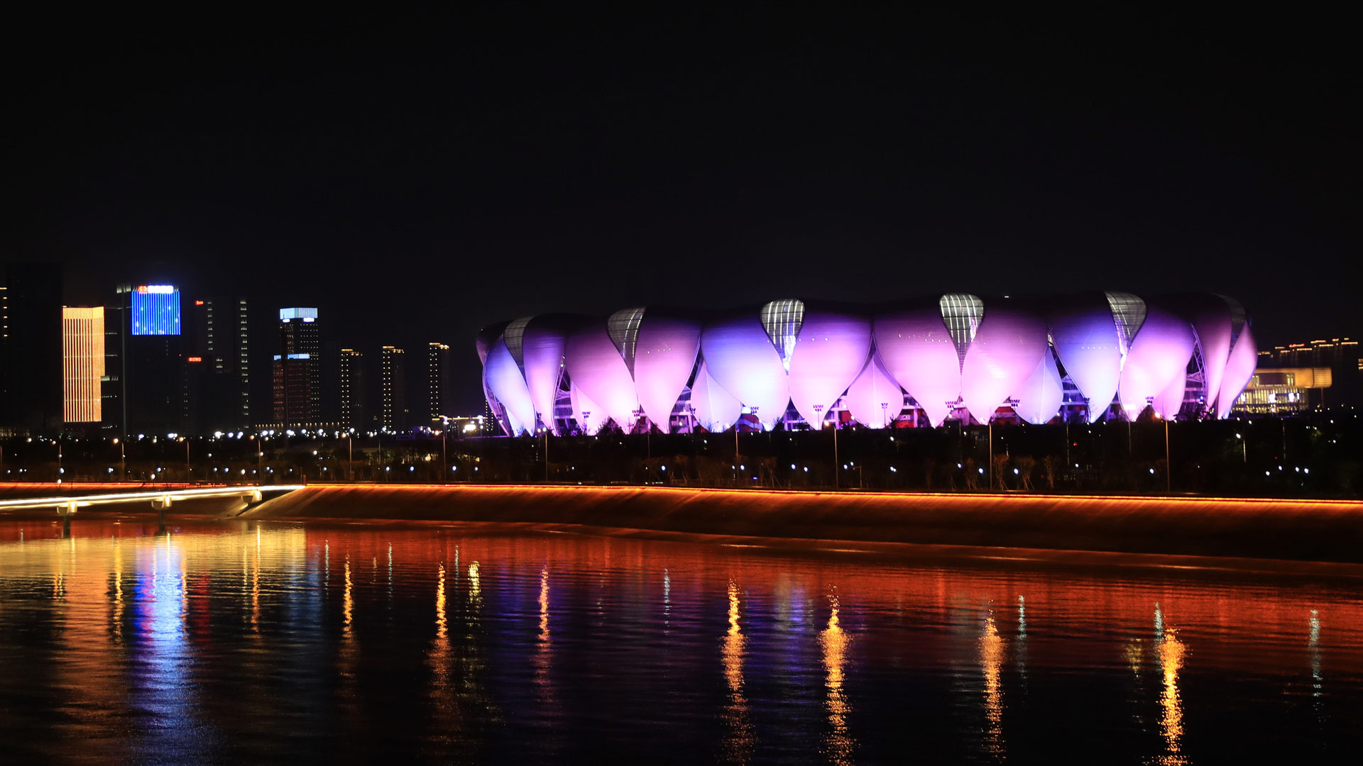 杭州奧體中心主體育場(chǎng)被彩燈點(diǎn)亮(8月31日攝)。新華社記者 徐昱 攝