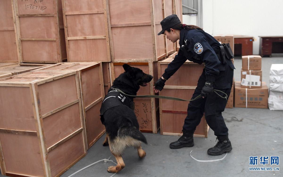 2月5日,劉慧和“威利”在車站行李房進(jìn)行搜查。新華社記者 程敏 攝