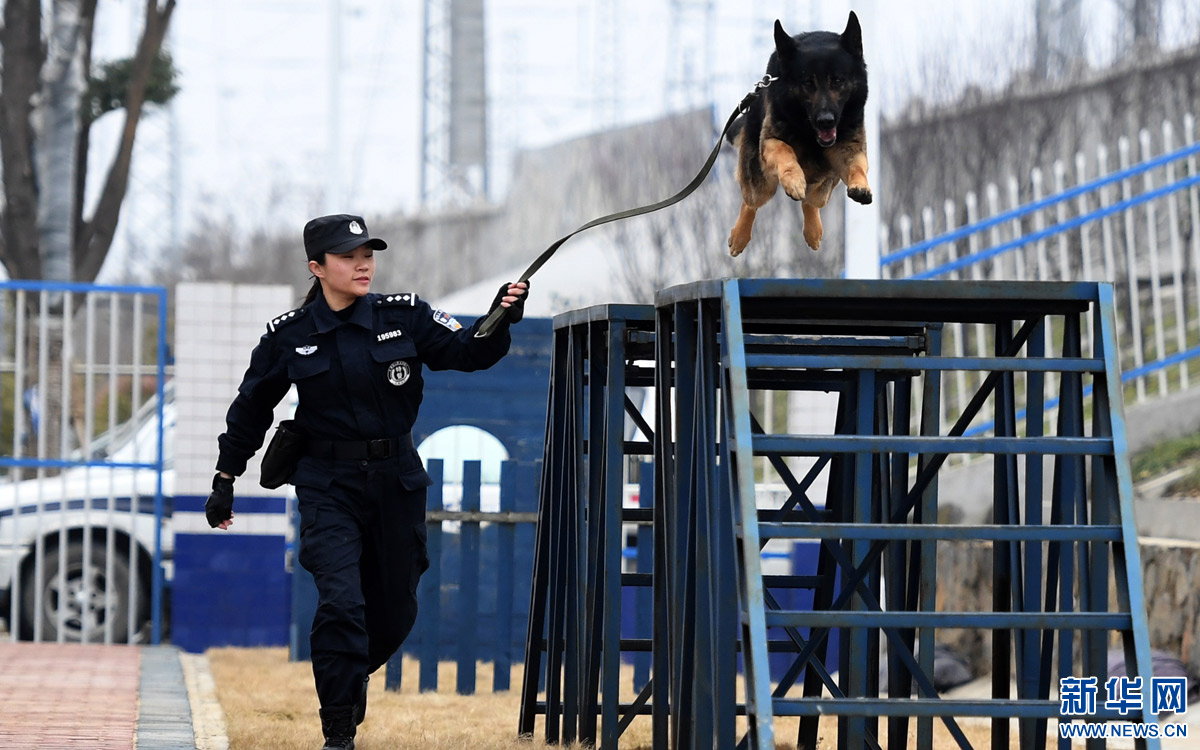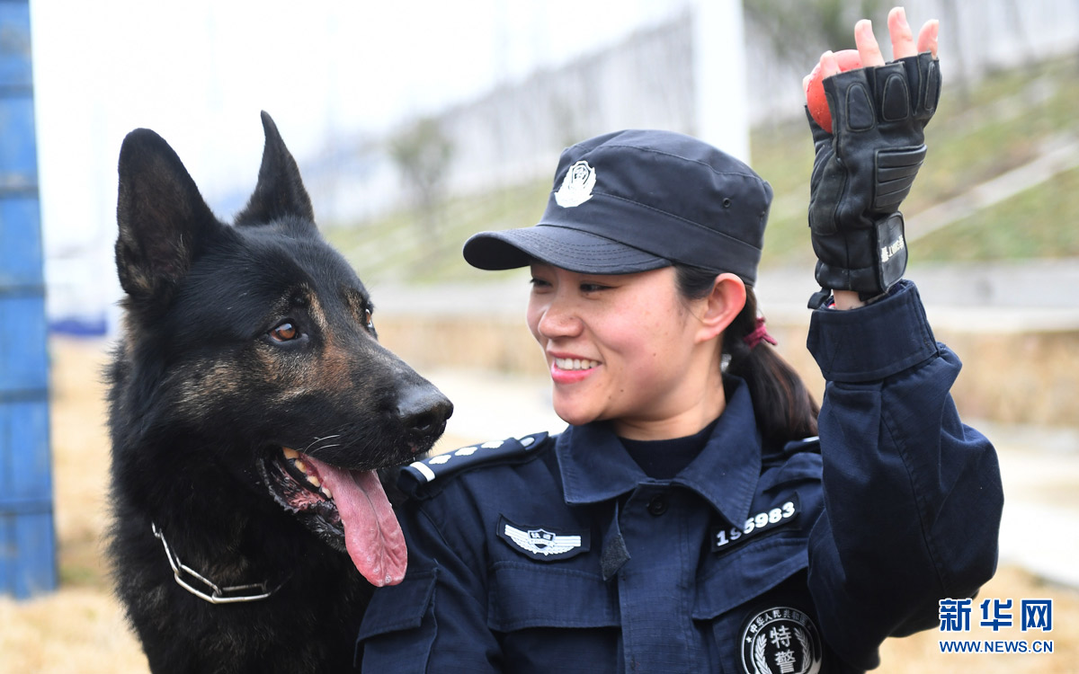 2月5日,劉慧和“威利”在警犬基地訓(xùn)練。新華社記者 程敏 攝
