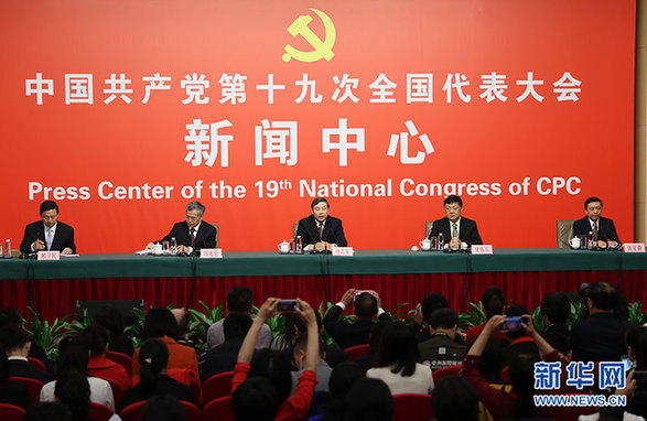 10月20日,十九大新聞中心舉行記者會,邀請中宣部、中央文明辦、文化部、新聞出版廣電總局相關(guān)負(fù)責(zé)人介紹加強思想道德和文化建設(shè)情況,并回答記者提問。圖為記者會現(xiàn)場。新華網(wǎng) 郝廣鵬 攝