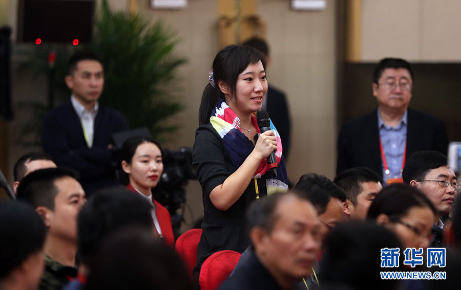 ??? 10月20日,十九大新聞中心舉辦集體采訪活動,主題為“實施創(chuàng)新驅(qū)動發(fā)展戰(zhàn)略”。圖為香港鳳凰衛(wèi)視記者提問。新華網(wǎng) 郝廣鵬攝