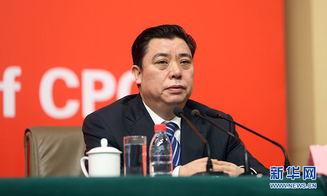 ???10月21日,十九大新聞中心舉辦記者招待會,邀請中共中央統(tǒng)戰(zhàn)部常務(wù)副部長張裔炯、副部長冉萬祥,中共中央對外聯(lián)絡(luò)部副部長郭業(yè)洲介紹黨的統(tǒng)一戰(zhàn)線工作和黨的對外交往情況,并回答記者提問。圖為中共中央統(tǒng)戰(zhàn)部副部長冉萬祥。新華網(wǎng) 郝廣鵬攝