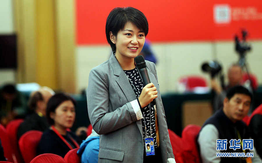 10月22日,十九大新聞中心在梅地亞中心二層新聞發(fā)布廳舉辦集體采訪活動,邀請教育領(lǐng)域代表談“教育綜合改革”。圖為新華網(wǎng)記者提問。新華網(wǎng) 郝廣鵬攝