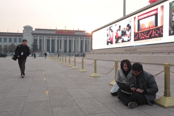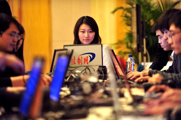 (兩會(huì)·人大開(kāi)幕)記者搶時(shí)效