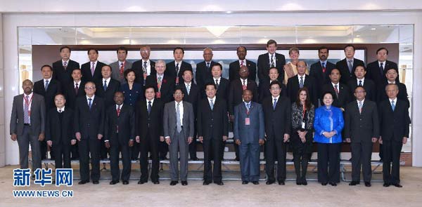 紀(jì)念大會(huì)開始前,賈慶林會(huì)見了出席大會(huì)的各國(guó)部長(zhǎng)、駐華使節(jié)和國(guó)際組織負(fù)責(zé)人。
