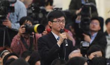 2012年3月4日上午11時,十一屆全國人大五次會議在人民大會堂三樓金色大廳舉行新聞發(fā)布會,由大會發(fā)言人就會議議程和人大工作相關(guān)的問題回答中外記者的提問。