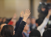 會議現(xiàn)場記者積極舉手提問