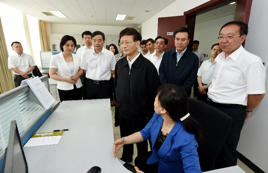 5月27日,中共中央政治局委員、中央政法委書記孟建柱在國(guó)家信訪局調(diào)研。圖為孟建柱查看國(guó)家信訪信息系統(tǒng)運(yùn)行情況。