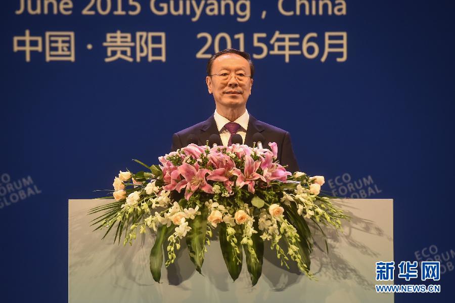 ??? 6月27日,中共中央書記處書記、全國政協(xié)副主席、中國經(jīng)濟(jì)社會理事會主席杜青林出席生態(tài)文明貴陽國際論壇2015年年會開幕式并講話。新華社記者 歐東衢 攝
