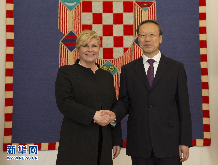 ??? 11月13日,在位于克羅地亞薩格勒布的總統(tǒng)府,克羅地亞總統(tǒng)基塔羅維奇(左)和中共中央書記處書記、全國(guó)政協(xié)副主席杜青林握手。正在克羅地亞訪問(wèn)的中共中央書記處書記、全國(guó)政協(xié)副主席杜青林13日在薩格勒布分別會(huì)見(jiàn)了克羅地亞總統(tǒng)基塔羅維奇和議長(zhǎng)萊科。新華社發(fā)(米紹·利沙寧攝)