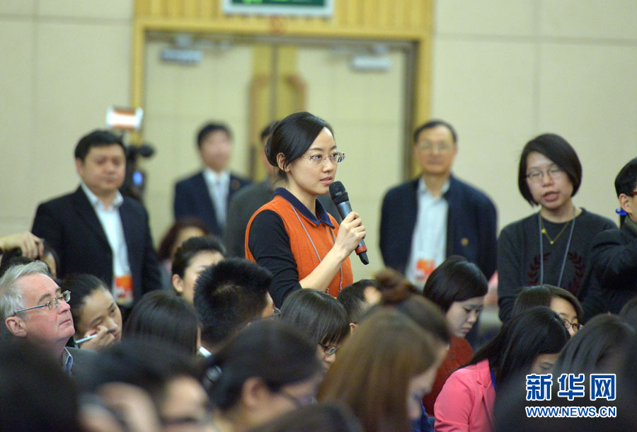 ????十二屆全國(guó)人大三次會(huì)議新聞中心于3月12日在梅地亞中心多功能廳舉行記者會(huì),邀請(qǐng)中國(guó)人民銀行行長(zhǎng)周小川,中國(guó)人民銀行副行長(zhǎng)、國(guó)家外匯管理局局長(zhǎng)易綱,中國(guó)人民銀行副行長(zhǎng)潘功勝,絲路基金有限責(zé)任公司董事長(zhǎng)金琦就金融改革與發(fā)展回答中外記者提問。圖為新華社和新華網(wǎng)記者提問。新華網(wǎng)/中國(guó)政府網(wǎng) 郭小天攝