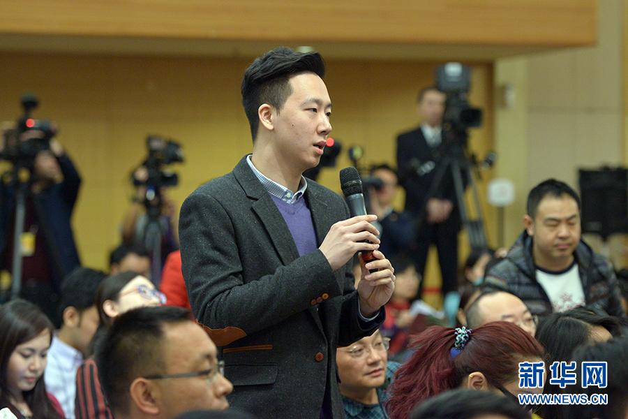 ????3月13日上午10時,十二屆全國人大三次會議新聞中心邀請四川大學(xué)校長謝和平、江蘇省教育廳廳長沈健、廣東省教育廳廳長羅偉其、海南大學(xué)校長李建保、貴州大學(xué)校長鄭強就完善高等教育治理結(jié)構(gòu)的相關(guān)問題回答中外記者提問。圖為中國日報社記者提問。新華網(wǎng)/中國政府網(wǎng) 郭小天 攝
