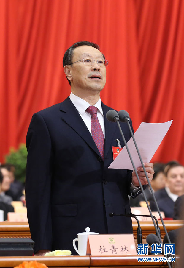 ??? 3月3日,中國(guó)人民政治協(xié)商會(huì)議第十二屆全國(guó)委員會(huì)第四次會(huì)議在北京人民大會(huì)堂開(kāi)幕。杜青林主持開(kāi)幕會(huì)。??新華社記者 龐興雷 攝