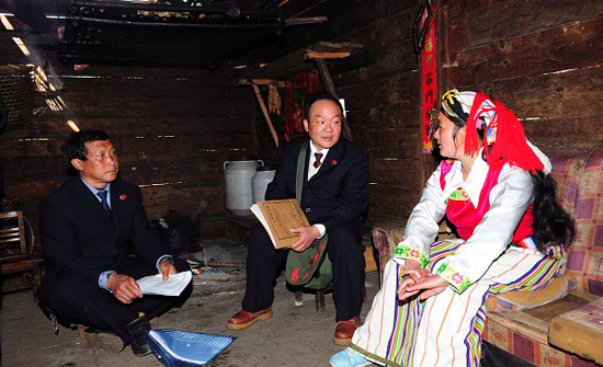 與此同時,江德華還虛心向當?shù)馗髯迦罕妼W習,學會了獨龍族、怒族、傈僳族和藏族四種少數(shù)民族語言,在做好檢察官本職工作之外,他還經常擔當起翻譯的角色。憑借一股韌勁和鉆勁,江德華成為了新中國成立以來的第一個獨龍族檢察官,成為了貢山縣檢察院的辦案能手,成了村里人的驕傲。