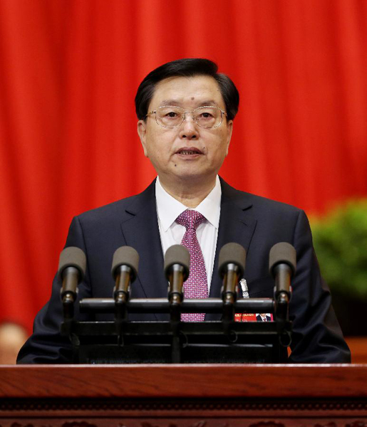 3月9日,十二屆全國人大常委會委員長張德江受十二屆全國人大常委會委托,向十二屆全國人大四次會議作《全國人民代表大會常務(wù)委員會工作報(bào)告》。新華社記者 姚大偉 攝