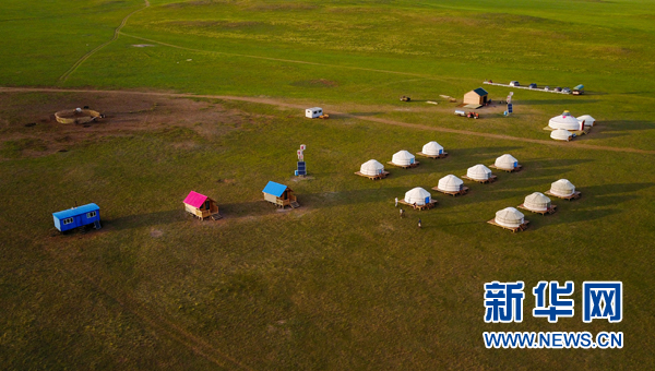 內(nèi)蒙古自治區(qū)新巴爾虎右旗克爾倫蘇木芒來嘎查黨支部書記米吉格家開辦的牧家樂(7月17日攝)。新華社記者 連振 攝