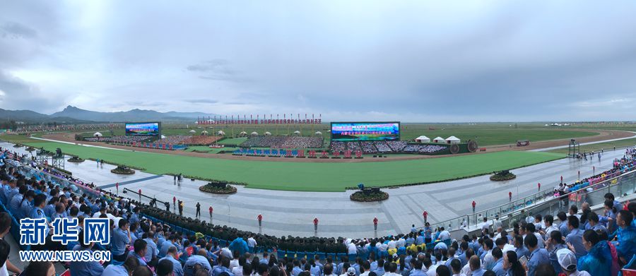 8月8日,內蒙古自治區(qū)成立70周年慶祝大會在呼和塔拉內蒙古少數民族群眾文化體育運動中心舉行。圖為大會現場。新華網記者 陳杰 攝