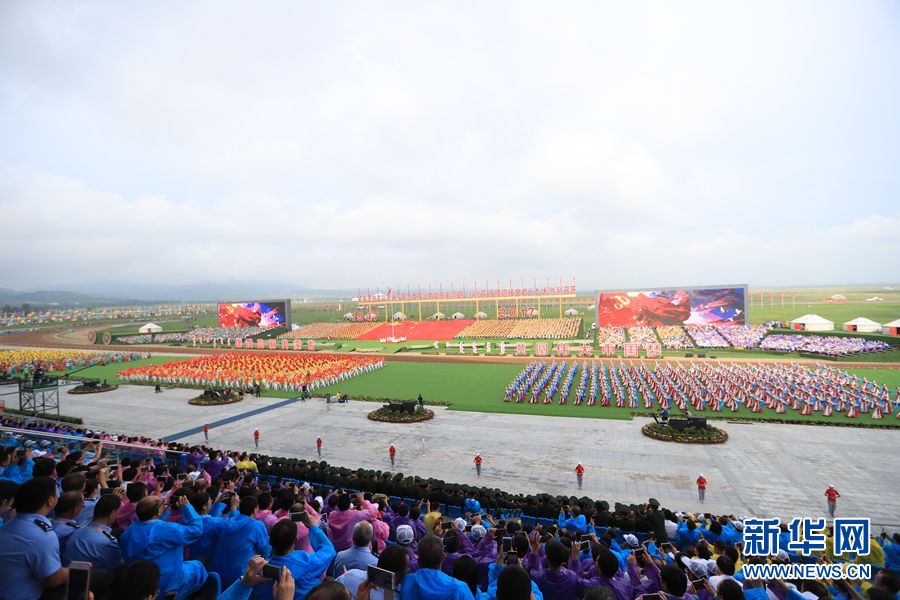8月8日,內(nèi)蒙古自治區(qū)成立70周年慶祝大會在呼和塔拉內(nèi)蒙古少數(shù)民族群眾文化體育運(yùn)動中心舉行。圖為群眾行進(jìn)表演。新華網(wǎng)記者 陳杰 攝