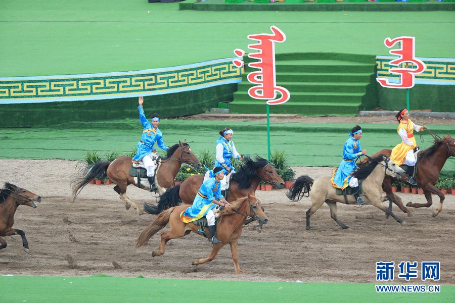 8月8日,內(nèi)蒙古自治區(qū)成立70周年慶祝大會在呼和塔拉內(nèi)蒙古少數(shù)民族群眾文化體育運動中心舉行。圖為群眾行進表演。新華網(wǎng)記者 陳杰 攝