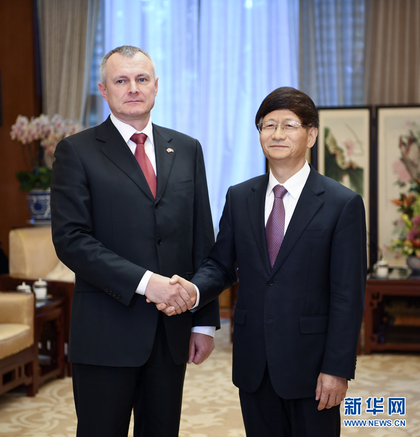 9月26日,中共中央政治局委員、中央政法委書記孟建柱在北京會(huì)見來(lái)華出席國(guó)際刑警組織第86屆全體大會(huì)的白俄羅斯內(nèi)務(wù)部長(zhǎng)舒涅維奇。新華社記者 張領(lǐng) 攝
