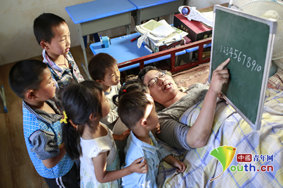 由于葉海濤的雙下肢關(guān)節(jié)僵直,沒有辦法筆直地坐著,他便躺在病床上,側(cè)著身子用小黑板給孩子們講解題目??墒沁@樣一來,躺的時間一旦久了,葉海濤的身體便會全都麻木,疼痛難忍。但他卻始終堅持著……最難熬的是夏季,他睡在板床上長時間保持同一個姿勢,全身都被汗水浸透了,額頭上黃豆般大小的汗珠不斷地冒出,滾落到板床上,床面已經(jīng)被浸濕。常人都難以忍受,更何況是患病在床的葉海濤呢?在這種異常難受的狀態(tài)下,葉海濤憑借自己驚人的毅力,克服困難,十八年如一日,堅持為孩子們輔導功課。這份教學工作,是繁雜的,須深入學習、不斷鉆研,研究教學思路。為了更好地勝任這份輔導任務(wù),他經(jīng)常在空余時間閱讀有關(guān)教育方面的書籍。
