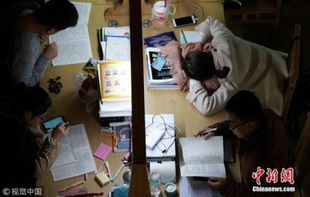 ↑近百名大學生在自習室內備考。圖片來源:視覺中國
