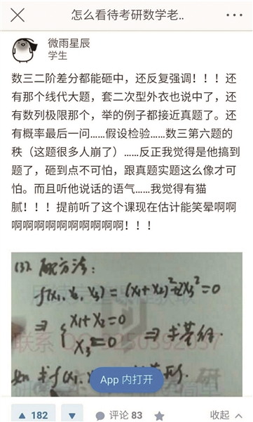 此外,北青報(bào)記者在采訪中還注意到,早在2012年,考研論壇就有網(wǎng)友發(fā)帖稱“李林屢屢命中考研數(shù)學(xué)題”,并推薦研友去“想辦法弄到他的視頻”。