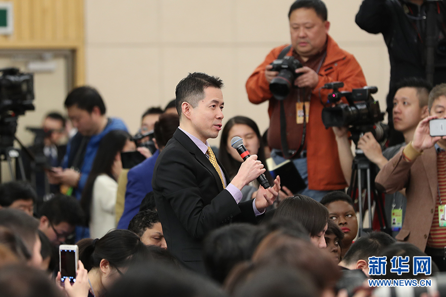 十二屆全國人大五次會議新聞中心于3月8日(星期三)10時在梅地亞中心多功能廳舉行記者會,邀請外交部部長王毅就“中國的外交政策和對外關(guān)系”的相關(guān)問題回答中外記者的提問。圖為美國有線電視新聞網(wǎng)記者提問。新華網(wǎng)/中國政府網(wǎng)?翟子赫 攝