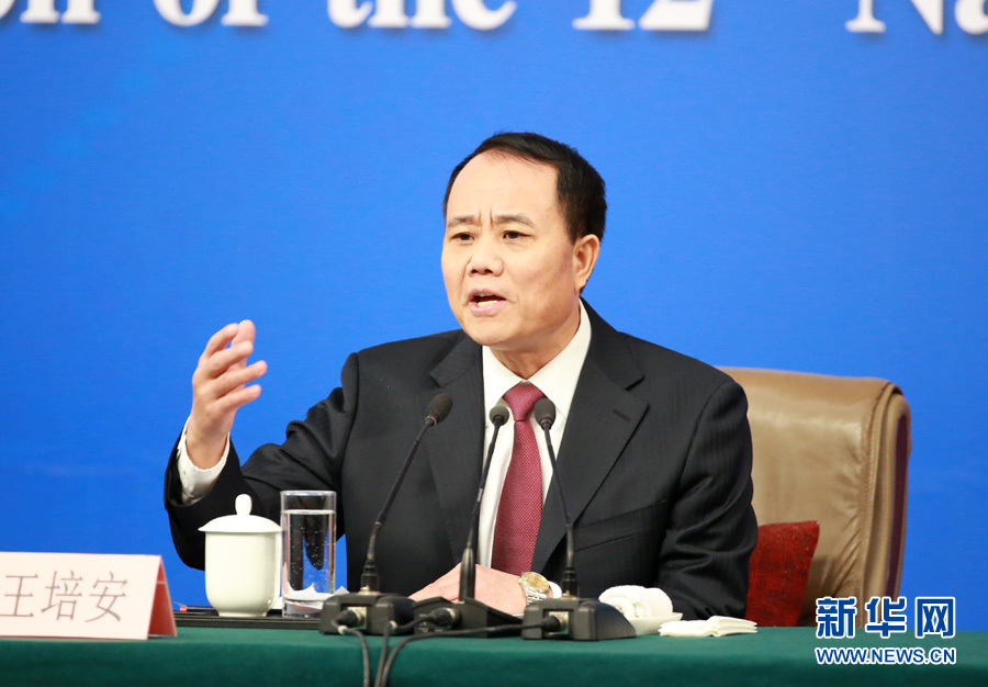 3月11日,十二屆全國人大五次會議新聞中心舉行記者會,邀請國家衛(wèi)生計生委主任李斌、副主任王培安和副主任、國務院醫(yī)改辦主任王賀勝就“‘十三五’開局之年衛(wèi)生計生改革發(fā)展”的相關問題回答中外記者的提問。圖為國家衛(wèi)生計生委副主任王培安回答記者提問。新華網(wǎng)/中國政府網(wǎng)?翟子赫 攝