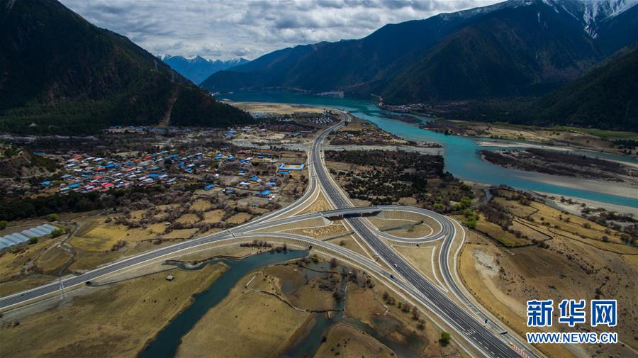 俯瞰西藏林芝境內(nèi)的拉林高等級(jí)公路(2016年4月4日攝)。拉林高等級(jí)公路起于拉薩市,止于林芝巴宜區(qū)八一鎮(zhèn)。為把拉林高等級(jí)公路建設(shè)成為生態(tài)通道、綠色長(zhǎng)廊、景觀(guān)大道,西藏自治區(qū)林業(yè)廳在科學(xué)指導(dǎo)和嚴(yán)格監(jiān)管下,堅(jiān)持不破壞、少擾動(dòng)、多恢復(fù)原則,對(duì)拉林高等級(jí)公路邊坡進(jìn)行綠化,種植草坪。新華社記者 普布扎西 攝