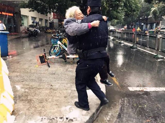 民警將老人抱起抬上警車送往醫(yī)院醫(yī)治
