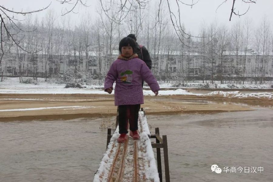 竹橋橋面結(jié)滿冰碴子,如同走在結(jié)冰的陶瓷地板上。