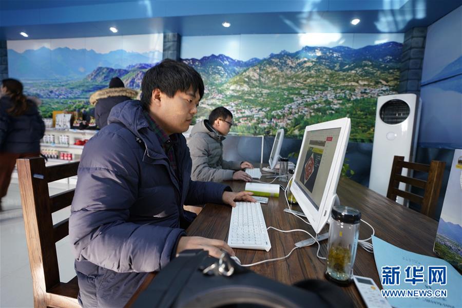 1月23日,山東省臨沂市費(fèi)縣大田莊鄉(xiāng)黃土莊村的奇尚農(nóng)村電商服務(wù)中心內(nèi)一片忙碌,四五個(gè)年輕人點(diǎn)擊著鼠標(biāo),在網(wǎng)上處理著來(lái)自全國(guó)各地的訂單。