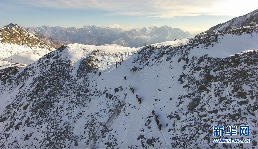 巡診隊(duì)沿著幾乎垂直的牧道翻越海拔4000多米的喬拉克達(dá)坂(2017年12月15日攝)。新華社記者 江文耀 攝