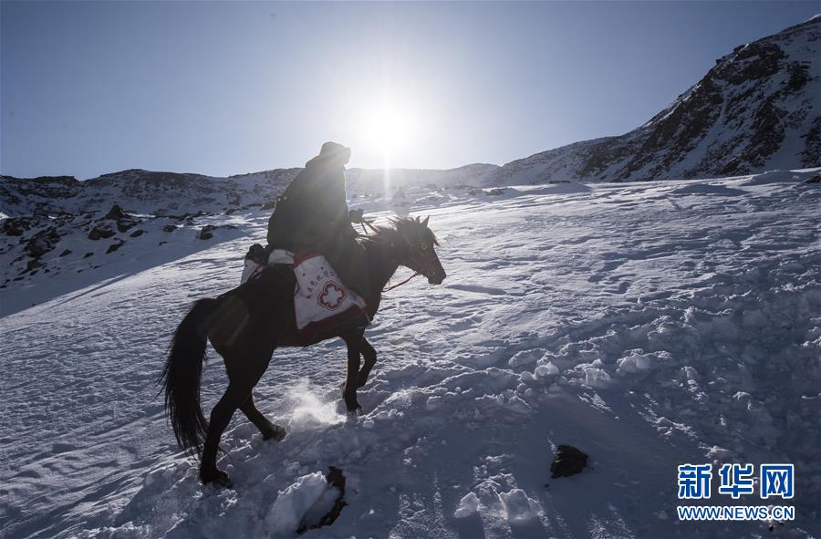 巡診隊(duì)醫(yī)生葉力夏提縱馬翻越喬拉克達(dá)坂(2017年12月15日攝)。 新華社記者 江文耀 攝