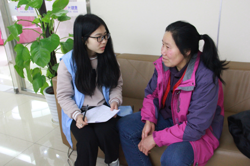 志愿者對(duì)打工母親進(jìn)行問卷調(diào)查