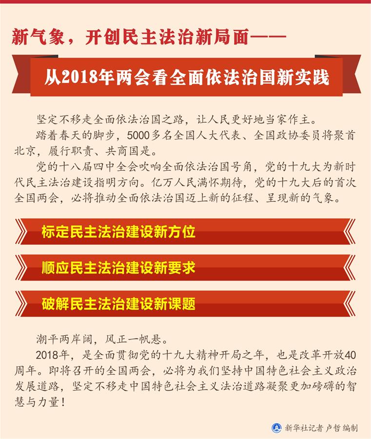 新華社北京2月28日電 題:新氣象,開創(chuàng)民主法治新局面——從2018年兩會(huì)看全面依法治國(guó)新實(shí)踐