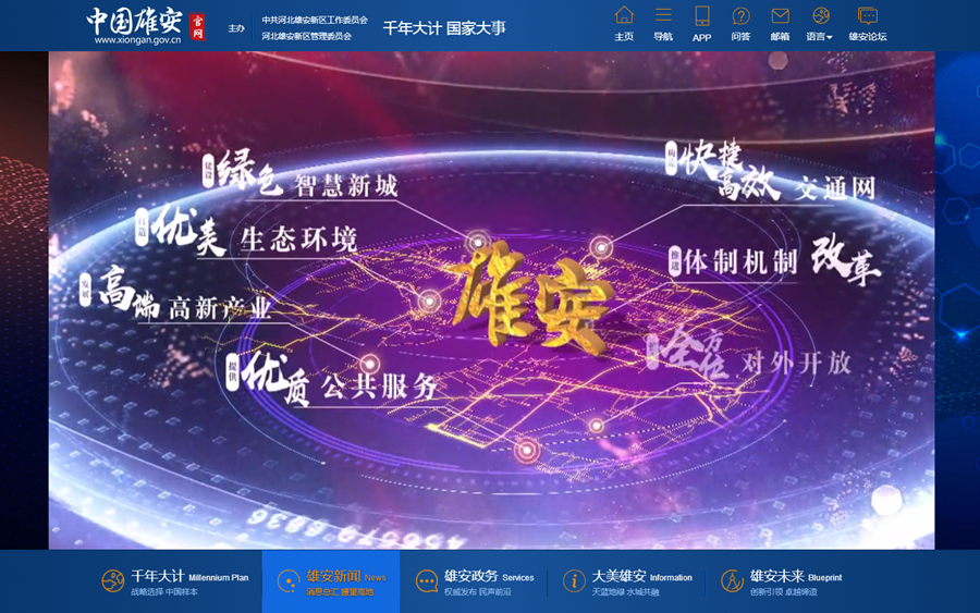 這是新華網(wǎng)承建的中國(guó)雄安官網(wǎng)首頁(yè)截圖