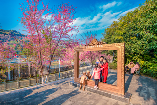 2018年1月,游客在攀枝花米易縣市民文化公園曬太陽、賞櫻花 王東 攝