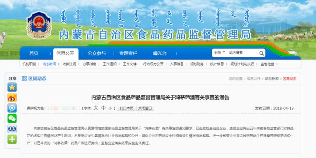 內蒙古自治區(qū)食品藥品監(jiān)督管理局認真貫徹落實國家藥品監(jiān)督管理局關于“鴻茅藥酒”有關事宜的通知要求,已組成檢查組赴企業(yè),責成企業(yè)將近五年來被各地監(jiān)管部門對其處罰的虛假廣告情況及產(chǎn)生原因、不良反應發(fā)生等情況向社會作出解釋和公開;督促企業(yè)對藥品安全性和有效性情況作出解釋。進一步核查企業(yè)是否按照藥品生產(chǎn)質量管理規(guī)范組織生產(chǎn);對已審批的“鴻茅藥酒”藥品廣告進行復核;監(jiān)督企業(yè)落實藥品安全主體責任。