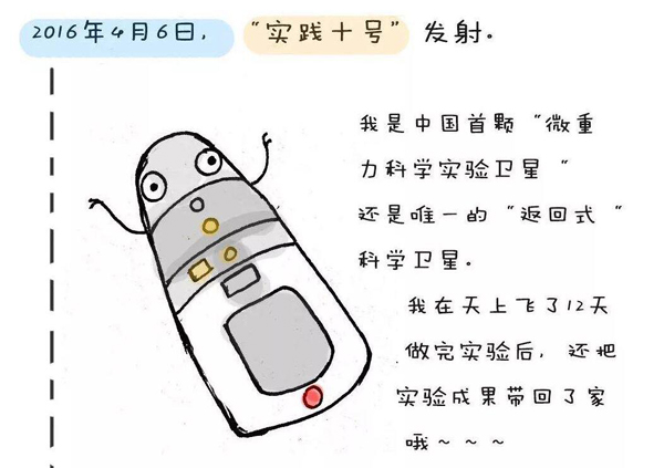 2016年4月6日,實踐十號返回式科學(xué)實驗衛(wèi)星成功發(fā)射。實踐十號衛(wèi)星是空間科學(xué)戰(zhàn)略性先導(dǎo)專項首批確定的科學(xué)衛(wèi)星項目中唯一的返回式衛(wèi)星,也是中國第一個專用的微重力實驗衛(wèi)星。2016年4月18日,實踐十號衛(wèi)星成功返回。