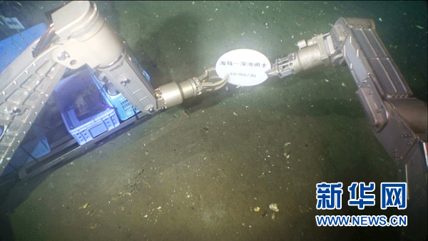 這是“海馬”號(hào)遙控潛水器拍攝的海底聯(lián)合工作過(guò)程。新華社發(fā)