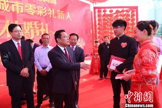 18對(duì)新人以“零彩禮”集體婚禮的形式步入幸福的婚姻殿堂,致敬青春?!√J柯柯 攝