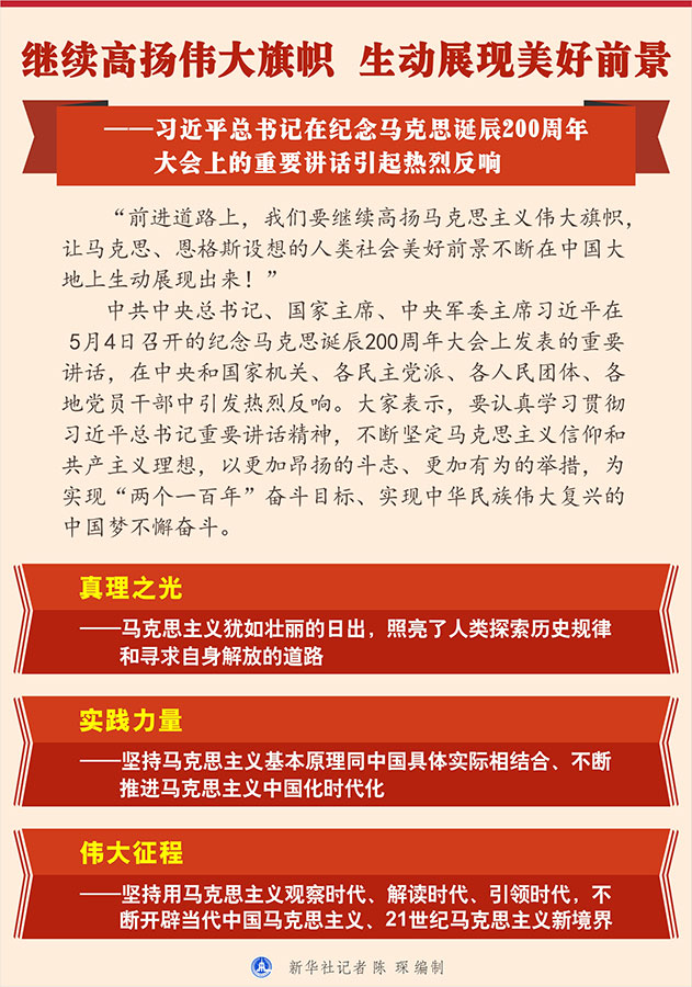 新華社北京5月4日電 題:繼續(xù)高揚(yáng)偉大旗幟 生動(dòng)展現(xiàn)美好前景——習(xí)近平總書記在紀(jì)念馬克思誕辰200周年大會(huì)上的重要講話引起熱烈反響
