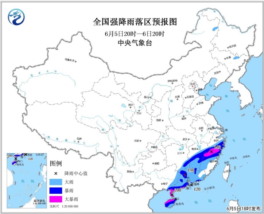 許映龍:南海的熱帶低壓于6月5日8時(shí)加強(qiáng)為今年第4號(hào)臺(tái)風(fēng)。5日16時(shí),第4號(hào)臺(tái)風(fēng)的中心位于海南省文昌市東偏南方向約85公里的海面上,中心附近最大風(fēng)力有8級(jí)(18米/秒)。目前,第4號(hào)臺(tái)風(fēng)以每小時(shí)20公里左右的速度向北偏西方向移動(dòng),并逐漸向我國(guó)海南東南部沿??拷?,并將于5日夜間至6日上午擦過(guò)或登陸海南東北部沿海(熱帶風(fēng)暴級(jí),20-23米/秒,8-9級(jí)),6日下午至7日早晨登陸廣東西部沿海(熱帶風(fēng)暴-強(qiáng)熱帶風(fēng)暴級(jí),20-25米/秒,8-10級(jí))。
