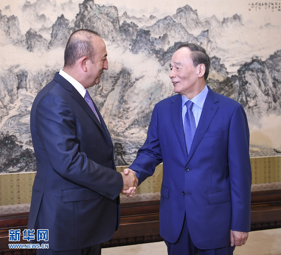 6月15日,國家副主席王岐山在北京中南海會見土耳其外長恰武什奧盧。 新華社記者張領攝