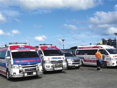 目前,普吉島查龍碼頭是搜救展開作業(yè)的地方,設有營救指揮部,內部配有醫(yī)護人員、旅游警察以及軍方人員,外面還有5輛救護車待命。當天普吉島天氣晴好,站在碼頭可看到大皇帝島,乘快艇二十分鐘便可抵達事發(fā)地附近。