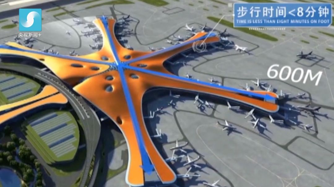 這樣的設計不僅可以設置更多的進機位,而且也使航站樓中心到最遠端登機口步行距離不超過600米,步行時間不到8分鐘。
