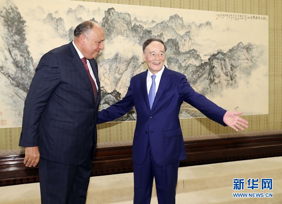在會見舒凱里時,王岐山表示,埃及是第一個承認(rèn)新中國的阿拉伯國家和非洲國家。近年來,在習(xí)近平主席和塞西總統(tǒng)的親自引領(lǐng)下,中埃關(guān)系持續(xù)穩(wěn)定發(fā)展。中國依然是發(fā)展中國家,發(fā)展不平衡不充分是我們面對的主要矛盾。中方愿同埃方加強(qiáng)各領(lǐng)域務(wù)實合作,使新時期中埃全面戰(zhàn)略伙伴關(guān)系取得更多成果,并對進(jìn)一步促進(jìn)中阿、中非關(guān)系發(fā)揮作用。